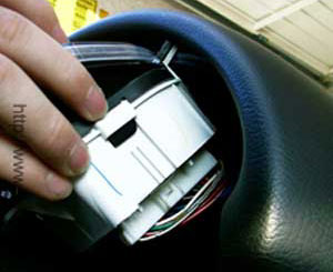 Auf der linken Seite befindet sich der Dimmer für die Innenbeleuchtung. Hier den Stecker (weiß) abziehen.