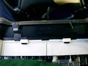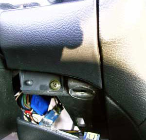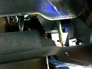 Als erstes entfernt man die Fußraumabdeckung wie auf dem Bildern zu sehen. Dabei vorsichtig hebeln. Das gleiche gilt für die linke Seite.