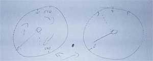 Diese müssen jetzt auf die gestrichelten Positionen verschoben werden. Im Uhrzeigersinn versteht sich. Nicht erschrecken, sobald ein Zeiger die 12 Uhr Position überschritten hat, fällt er von ganz alleine wieder ab. Dadurch geht nix kaputt !