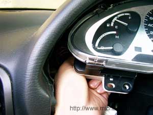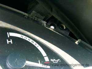 So, jetzt kann man den Tacho raus nehmen....wie man sieht, bekommt man jetzt trouble mit dem Schalter für die Warnblinkanlage.....also nicht wundern, wen plötzlich das Auto leuchtet wie ein Weihnachtsbaum...einfach drüber ziehen...