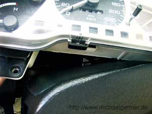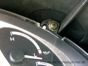Als nächstes löst man die obere Schraube der Tachoeinheit. Das gleiche gilt für links und unten.