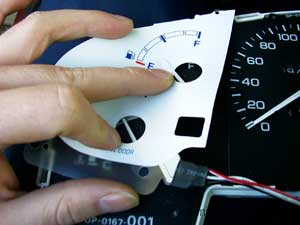 Jetzt drehen wir die Scheibe und Zeiger gleichzeitig. Der km/h Zeiger muss jetzt GEGEN den Uhrzeigersinn wieder (beim Einschieben) zurückgedreht werden. Immer auch auf dem RPM-Zeiger achten.