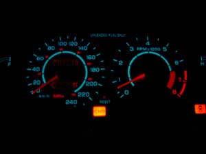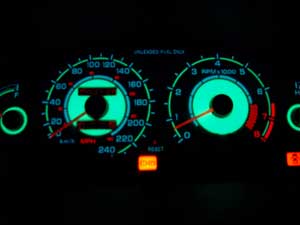 • Einteilig, weiss, nur die Ziffern leuchten (wie im Originaltacho) oder alternativ weitere abgesetzte Bereiche aber in verschieden möglichen Farben (blau, rot, grün usw. wobei blaue bzw. grüne Bereiche umschaltbar sind)